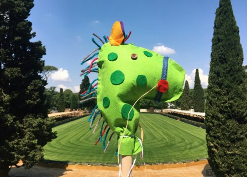 In questo laboratorio i bambini si divertiranno a creare con stoffe, bottoni, fili di lana e altre decorazioni la testa di un cavallo con cui giocare e correre al galoppo di un manico di scopa.