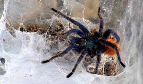 Un grande ragno tropicale, per l’esattezza una tarantola sudamericana (Chromatopelma cyaneopubescens) dal vistoso addome di color arancione e le otto zampe azzurre coperte di peli, dopo aver passeggiato nell’area scarico merci di un supermercato romano, in zona Piazza Zama, è finito in una accogliente teca del Bioparco di Roma, grazie ad un intervento del personale zoologico del Bioparco. Il Direttore zoologico – allertato dai vigili urbani, su segnalazione del Dipartimento benessere Animali di Roma Capitale e dei cittadini, allarmati, se non terrorizzati – ha inviato sul posto i keeper del Rettilario.