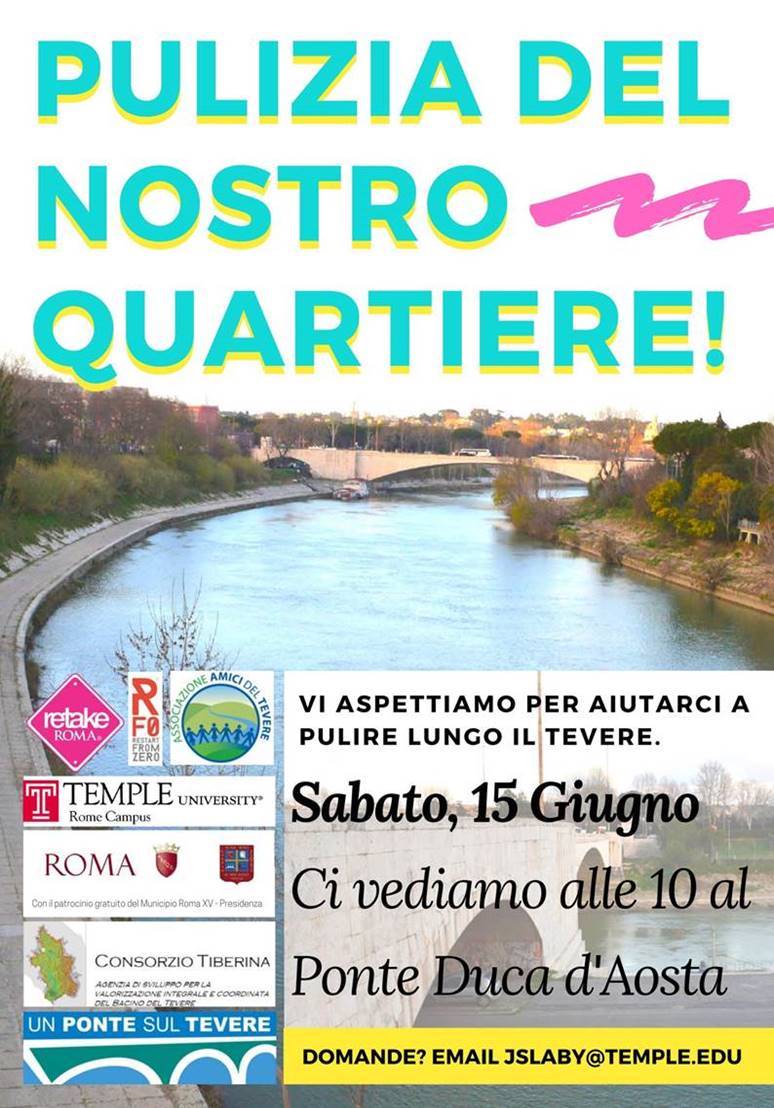 Obiettivo, ripulire il Tevere dai rifiuti. Per chi volesse partecipare, l’appuntamento è per sabato 15 giugno sotto Ponte Duca d’Aosta – in sponda destra (lato Foro Italico) – alle ore 10:00 sotto l’area monumentale. L’iniziativa – lanciata da associazione Amici del Tevere e Consorzio Tiberina, associazione Retake, Temple University e RF0 – Restart from Zero – ha il patrocinio del Municipio XV di Roma Capitale.