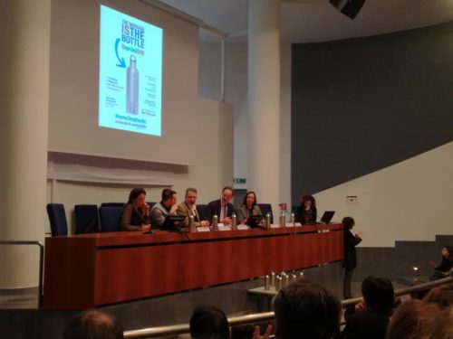 Il lancio di ‘The messe is the bottle’, l’iniziativa di Roma Tre per la distribuzione agli studenti di 30.000 borracce di acciaio inossidabile, è stata anche l’occasione per ribadire che “la sostenibilità ambientale per Roma Tre – sottolinea il rettore Pietromarchi – non è solo un valore da difendere, ma una pratica da diffondere”.
