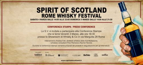 Si tiene a Roma, sabato 4 e domenica 5 marzo 2017, presso il Salone delle Fontane all’Eur (via Ciro il Grande, 10) la sesta edizione di Spirit of Scotland – Rome Whisky Festival, il più importante festival di settore italiano. Programma completo al link www.spiritofscotland.it