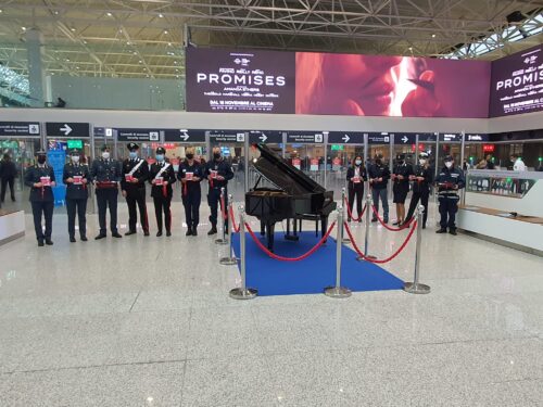 La lotta alla violenza contro le donne fatta di piccoli e grandi gesti anche all’aeroporto di Roma Fiumicino Leonardo da Vinci. Questa mattina – in occasione della Giornata internazionale contro la violenza sulle donne – si è svolta una esibizione musicale, del maestro Adriano Leonardo Scapicchi, che ha allietato il Terminal 1. Nel frattempo, il personale di Aeroporti di Roma e le forze dell’ordine hanno distribuito ai passeggeri dei braccialetti simbolo della giornata e una brochure per ricordare il simbolo per chiedere aiuto: un piccolo gesto da fare con la mano per far sapere di essere in pericolo e chiedere aiuto senza correre il rischio di essere sorpresi dal proprio aggressore.