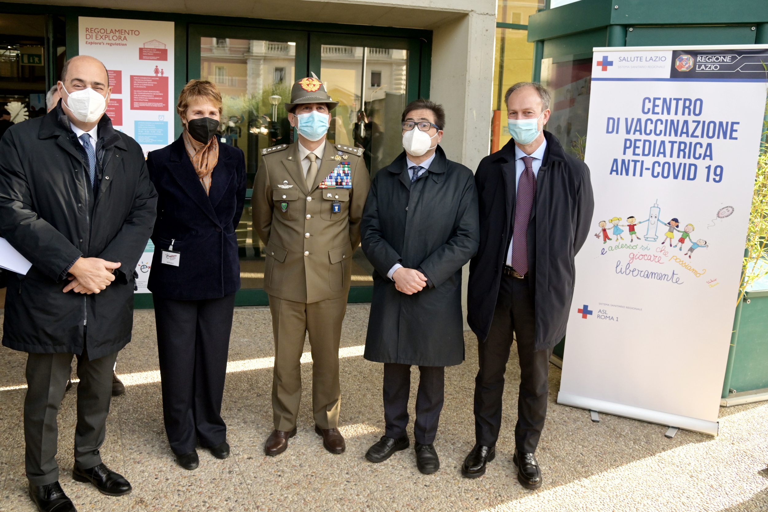 Il Presidente della Regione Lazio, Nicola Zingaretti e il Commissario Straordinario dell’Emergenza Codid-19 Generale Francesco Paolo Figliuolo hanno visitato questa mattina il centro vaccinale pediatrico presso Explora Museo dei bambini. Hanno partecipato, tra gli altri, l’assessore regionale alla Sanità, Alessio D’Amato e il Direttore Generale Asl Roma 1 Angelo Tanese. Per i bambini giochi, musica, sorrisi e un attestato di coraggio dopo la puntura, in un luogo a misura di bambino. La campagna vaccinale, ricorda la Asl Roma 1, “non si fermerà con le imminenti festività e invitiamo i cittadini a trascorrere le feste in modo responsabile, secondo le indicazioni regionali, per garantire la sicurezza di tutti”.