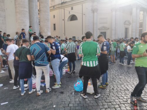 In campo Roma-Betis Siviglia, a piazza del Popolo lo scempio prodotto dai circa 5000 ultras spagnoli che lì si erano dati appuntamento.