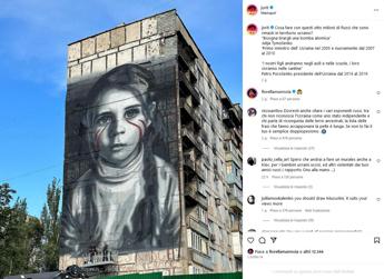 Lo street artist napoletano documenta il suo lavoro sui social e denuncia: "La resistenza che avremmo dovuto appoggiare è quella del popolo del Donbass"