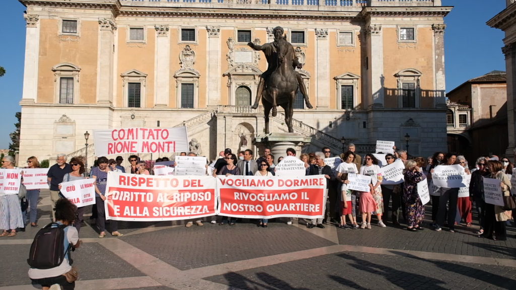In Piazza del Campidoglio i comitati di quartiere delle zone più colpite dalla “mala movida”, con i residenti sul piede di guerra ed esasperati dal chiasso, dal caos e dalla sporcizia. Ma i controlli?